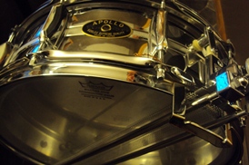 The best part of the story (albeit sad in a way) is that after 53 years, they are closing the business. Everything is 75% off the ticketed price. The Apollo snare had a ticketed price of $225, so I got it for $62.50 plus tax. I also got a NOS Ludwig Super Sensitive, with the hang tag still attached. It is an Elkhart era one, B/O badge, dead mint, less than $200. I also snagged a couple Premier tri-lock snare stands, a pile of lugs for Acrolites (or other) snare drums, P-85 strainers, and springs, legs, mallets, etc..... for dirt cheap.