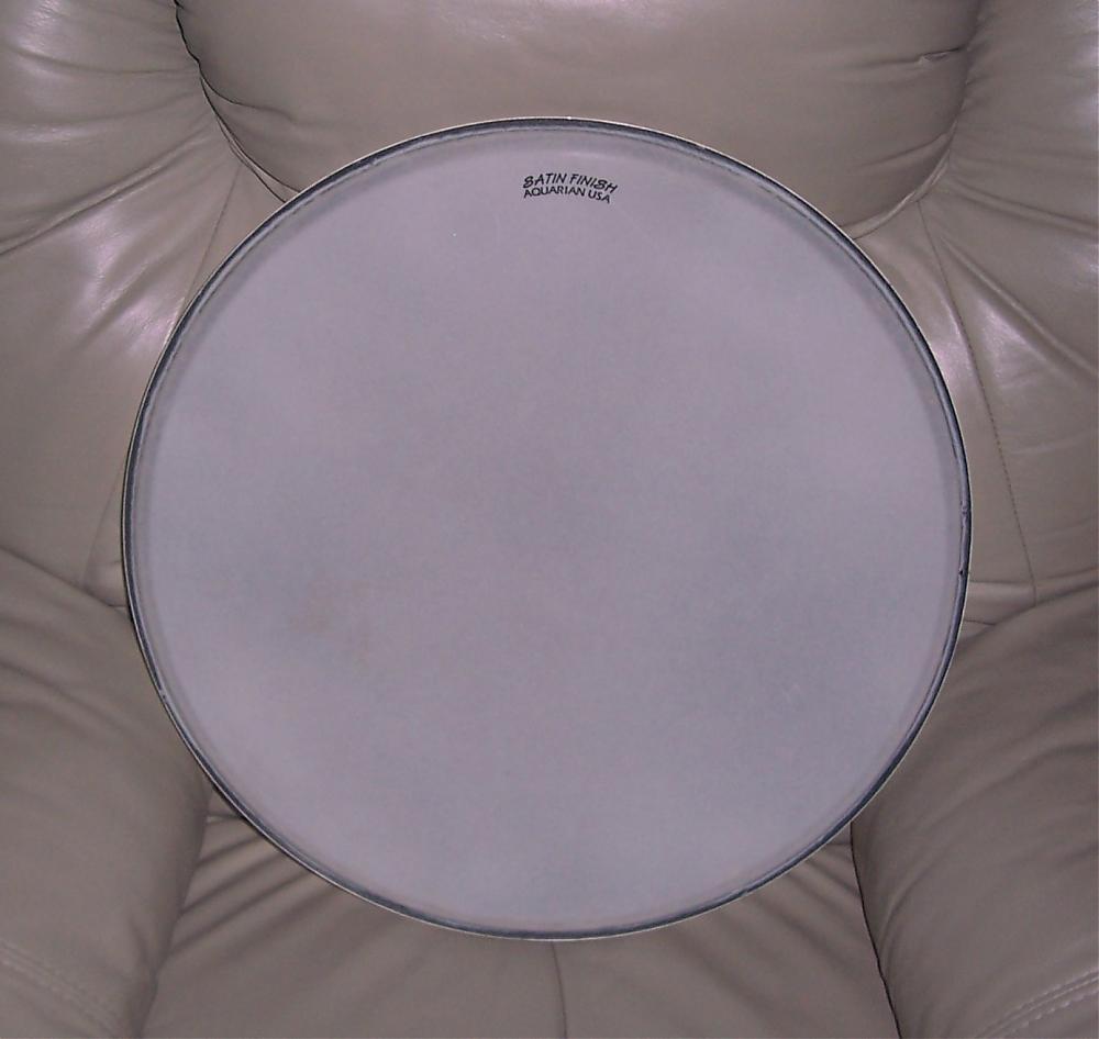 I've got two Aquarian Satin Finish heads that I'm selling. One is an 18" and the other a 15". Both are in really nice condition. The drums they were removed from had REMO Weather King Clear Ambassadors on the bottom sides. I'll also include those, if interested. Have a look a the pics of the Aquarians and drop me a PM if you think they're something that you can use. Any "pinkish hue" in any of the pics is from the camera. I apologize for that.