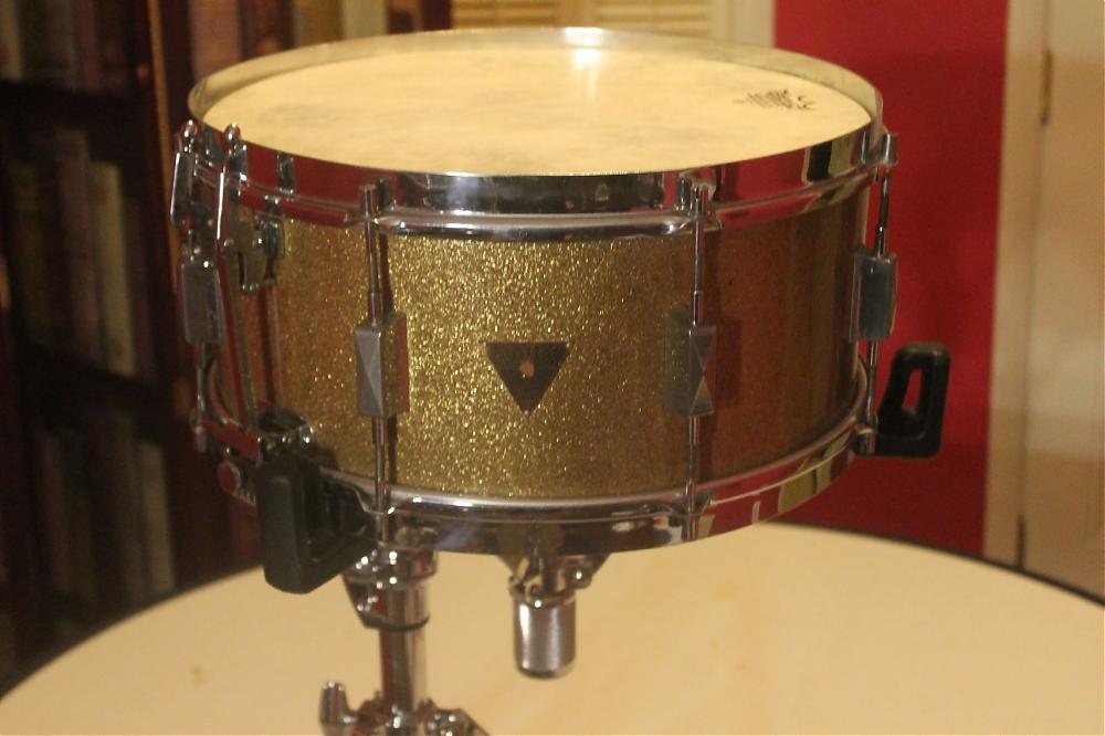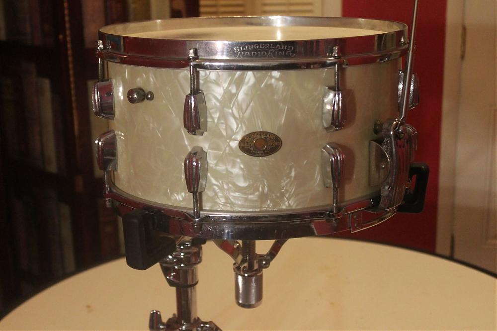 I have some American drums as well. a '55-ish Gene Krupa Radio King (still has Radio King on the hoops), a mid-'60s non-yellowed WMP Tuxedo lug Camco, and finally, a mid-'60s champagne wooden Dyna-sonic.