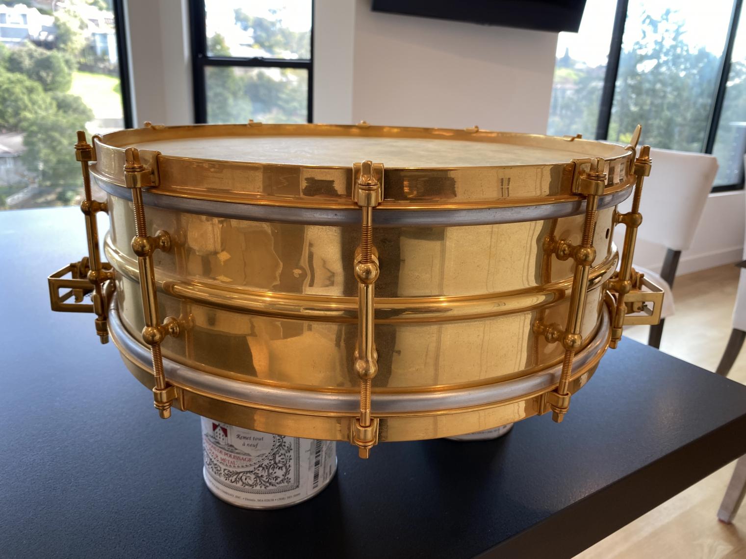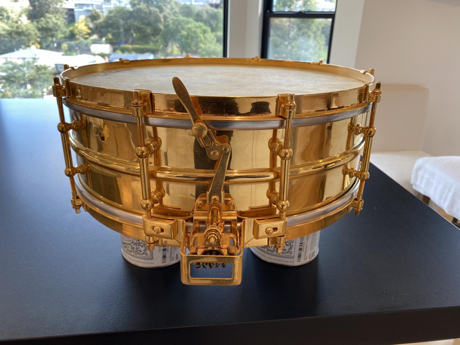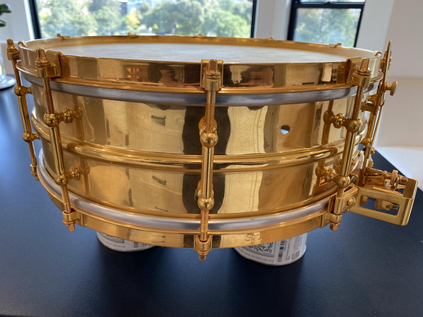 1927-30 LUDWIG & LUDWIG 5 x 15 GOLD PLATED SUPER-LUDWIG THEATER MODEL