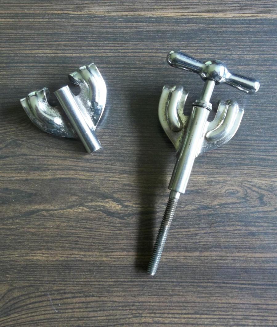 For sale : bass drum tension rods and claws. From what I have seen, the 12 claws (placed in rows) and 8 T-rods seem to be Gretsch BroadKast from the 30s. I have seen what appears to be identical claws on Leedy & Ludwig Humberto Morales model timbales from the '50s which I've heard/read were made by Gretsch but I can't confirm.