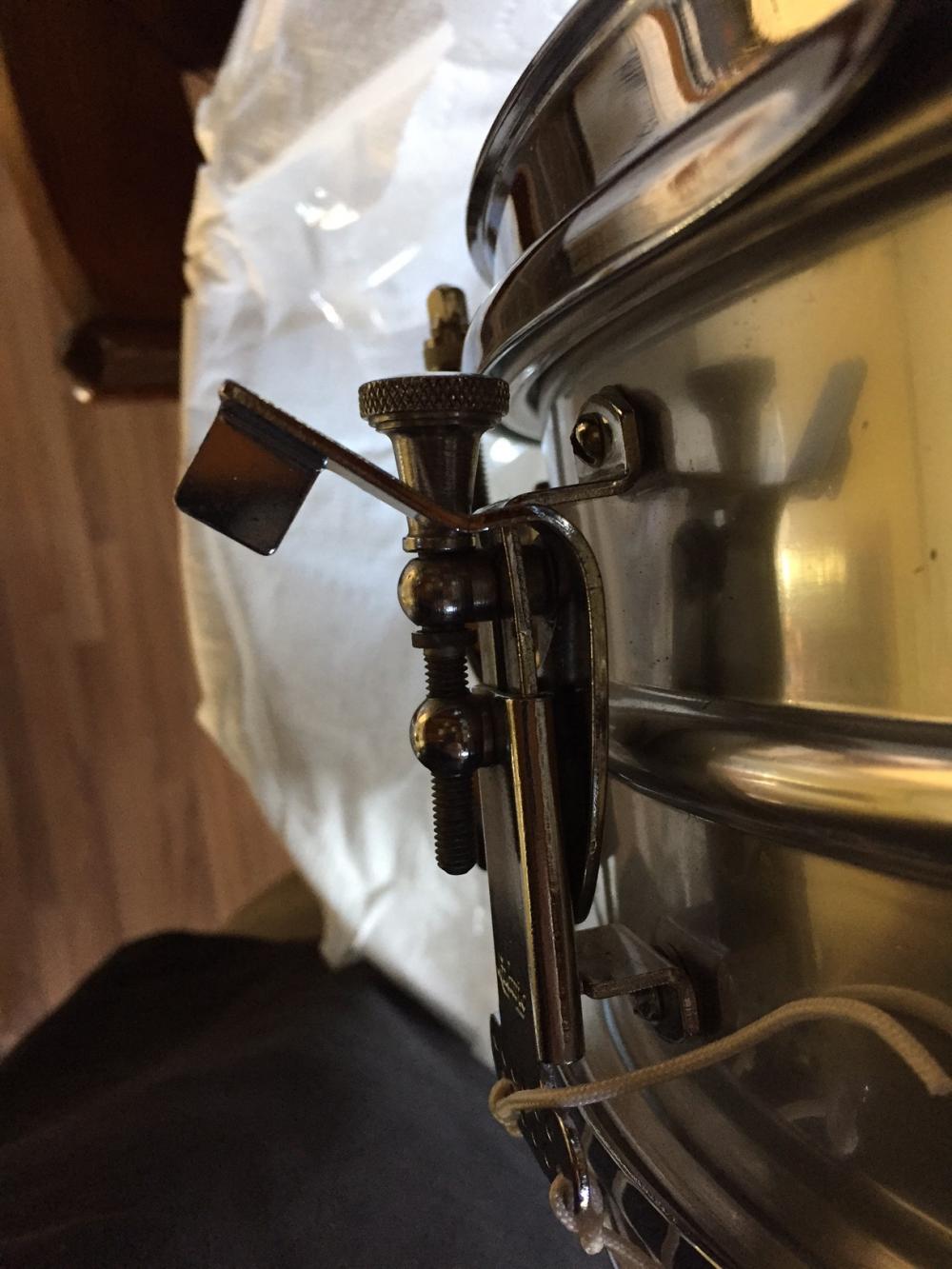 Hello, this is my first post and first Ludwig snare. I purchased a 1967 Acrolite and didn't notice the bent lever on the strainer. I can't imagine how it got bent, it seems pretty sturdy. So, the strainer moves nice and smoothly and the bend doesn't seem to affect any moving parts but I would like to know if it is possible to straighten it. I feel like I paid a fair price for the drum (not a great deal however) and the cost of buying a replacement P-83 looks to be pretty expensive. It's a shame because it's nice and shiny and not pitted. I've thought of ways to straighten it if I take it off the drum but I don't know how brittle this metal. Any suggestions on how to do it successfully or where to get a replacement lever would be greatly appreciated.