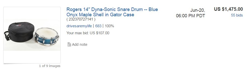 This drum sold at a very nice price all around. Someone will be very happy. Interesting to note that is is close to twice the price of the new ones, so the older ones are still holding good value. No lack of interest either with 55 bids!