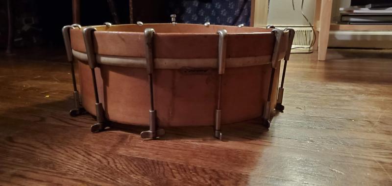 It's 13x3.25. Took the head off. Head seems to be original. Also has snare beds and pencil marks still from when they were cut. Rounded bearing edges on both sides. Here are some more pics with the head off.