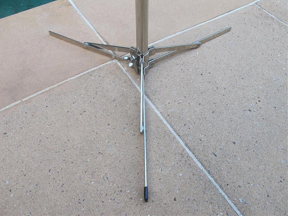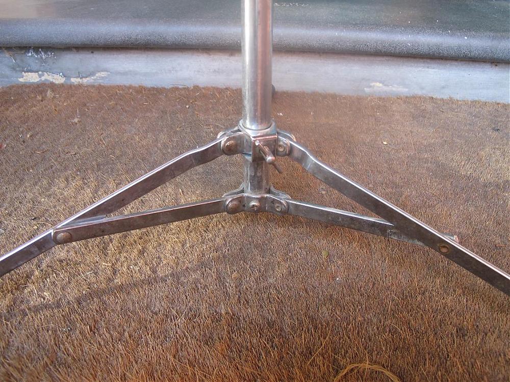 The first one on the left is an older generic MIJ possibly a hybrid assembled with retrofit top rod with tilter. In spite of its shortcomings the middle and base are made of high quality chromed steel. Probably an insert hole right in the lower bottom tubing where the tightened wingscrew fits when the tripod is set up, and usually the middle section has an upper wingscrew which penetrates all the way through the tubing to clamp the top rod directly without use of any vise type joint.