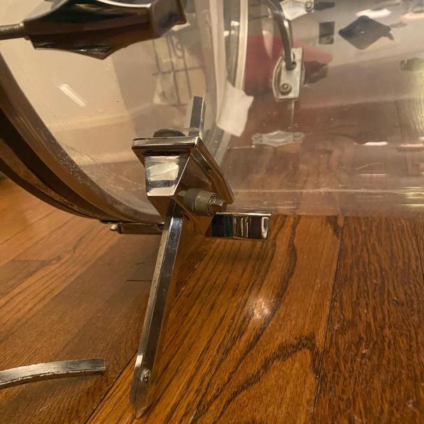 I saw your posts/pics on the spurs debacle after you picked up that Fibes 14X20 clear Crystalite bass drum. I’d swap out those Ludwig’s too! Just an awful installation by the 1st owner. You will no doubt come up with a solution. As to the history of Milestone … Paul Mason bought the company back in the mid 80’s I think. It was always a small “boutique” brand in its heyday, so there probably isn’t a lot of backstory. If memory serves, Milestone was started by two brothers that owned a drum shop in Canada, and it gained some traction from there. They did have a few names playing them though, but not enough to really make any serious inroads. The main complaint with them wasn’t the drums themselves … it was the hardware! The spurs you picked up look pretty nice though. Certainly sturdy. You may just have to make a plate to cover all those other holes, and re drill and mount whatever you go with correctly. By the way, my 1st Fibes set which I bought brand new in 1973!, was a little “jazz” set in clear Crystalite. The bass drum was a 14X20, and it KILLED! I gigged those steady for 10 years! I added to the set and it ended up at 7 pieces including double bass. Still playing Fibes today … which I know you know!
