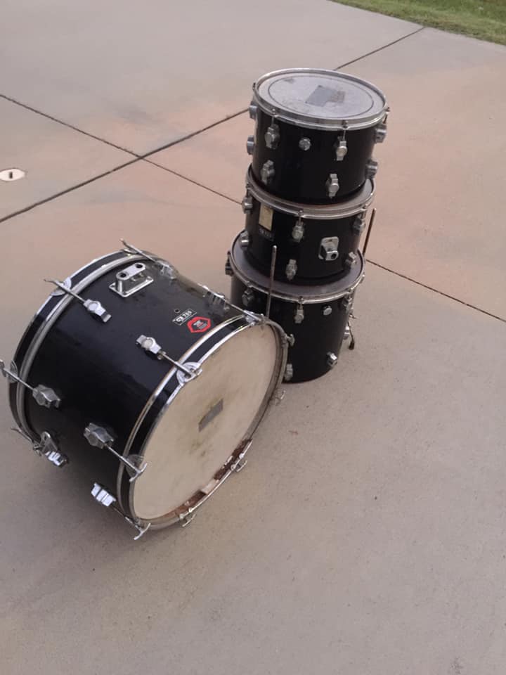 Got the drums...they are dirty! I'm going to re-wrap them. The floor tom wrap is cracked pretty bad anyway. Got the hardware off and am in the stage of cleaning the chrome....man that is alot of work :) The center pieces are kinda messed up on several and I like the all chrome look better anyway, so I am popping the center part out. I will post pics once I have got the kit finished!