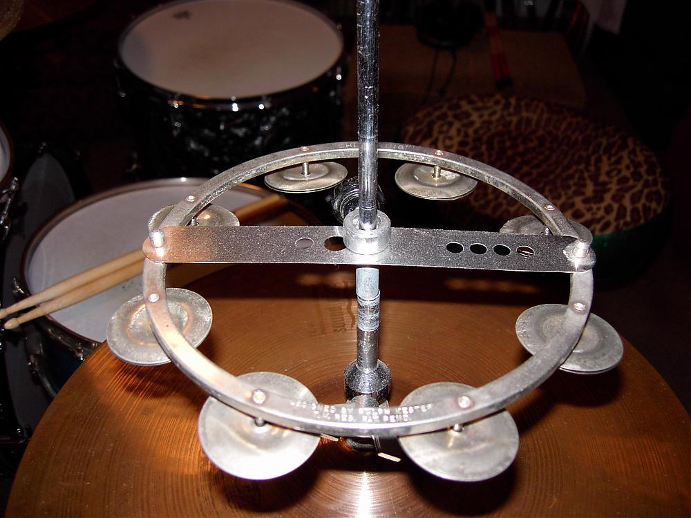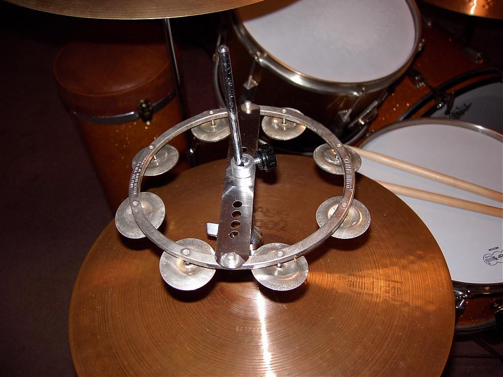 these picture's I'm showing you, I have the ching ring mounted 3" above my 15" Paiste soundedge hi hats. they are not quite volume wise at all. the jingles resonate through the hollow ring which adds volume and tone to the Ching Ring. I used auto fender spacers that I had to enlarge with a drill for them to fit over the hi hat stand rod and a large circular spacer that I drilled a small hole into it then threaded it and place a small mounting knob as to hold it in place,The reason I went this route instead of using a real hat clutch, are do to the fact that the holes on the ching ring will not accommodate a modern clutch. I own 3 60's ching rings two are NOS in the box and the one you see is the one I've used for 37 years. And sorry no they aren't for sale.