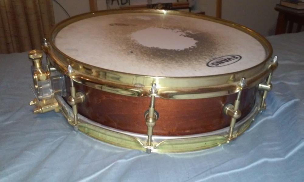 I like that a lot. For $40 you can't go wrong on any wood snare. How are the bearing edges? Recut, matched? Even if that shell is a cut-down, it looks like you got yourself a nice piccolo there. How's it sound? With a Remo Diplomat, I bet it would be super responsive.