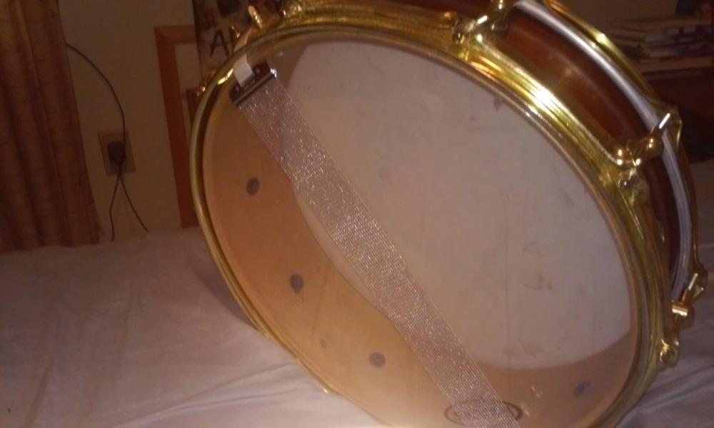 I'm not sure what this is, probably a custom job, but since I only paid $40, I couldn't pass it up. It's a 4x14 and looks to be a maple shell. The seller was told it was a Slingerland shell cut down to make a snare. Who knows, but it's a pretty cool little drum.