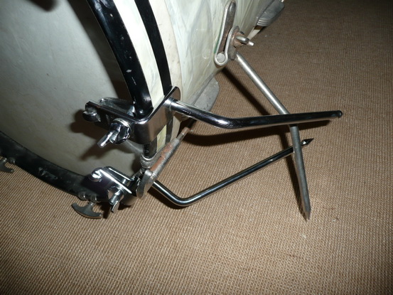 I was hoping to use clamp on spurs to further stabilize a 1957 Ludwig bass drum's "folding" spurs. This is my first foray into clamp on spurs. I already have a vintage Ludwig front of bass drum anti-creep gizmo; I was hoping the clamp ons would add another layer of solidity to the setup.