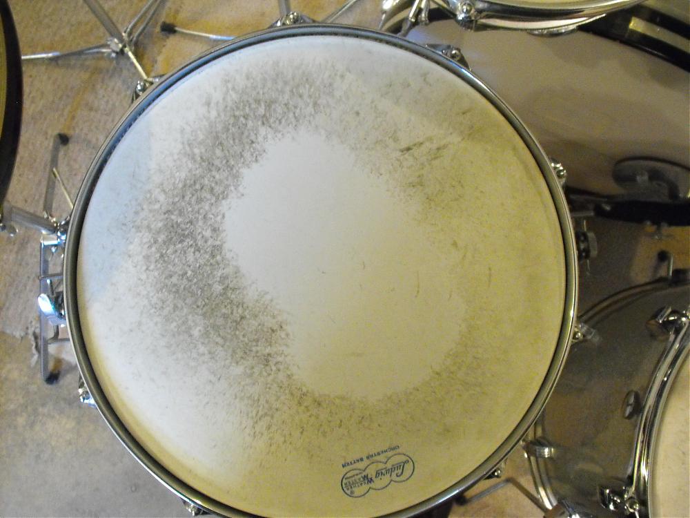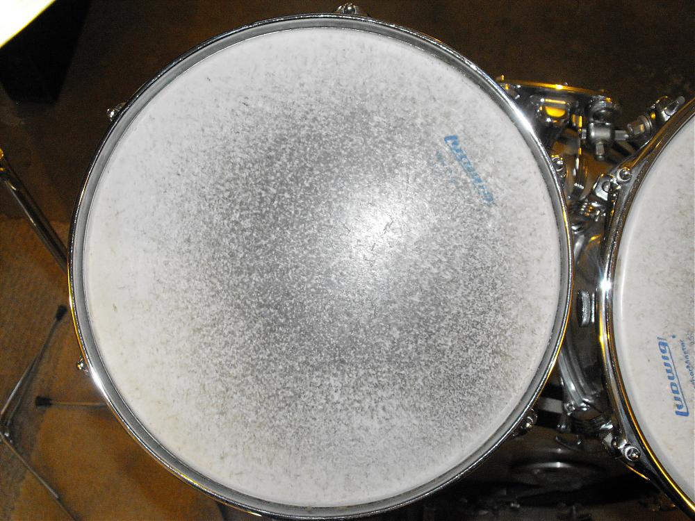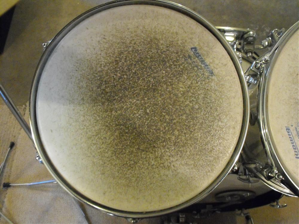 I cleaned an old Slingerland 2 ply marching batter head in the sink with warm water, dish detergent and a soft plastic scrubbie - It cleaned up nicely - but water got in between the plies - After a day by the warm air duct, it still wouldn't dry out. - Since I needed it, I just put it on - After I tuned it up, it seems to have dried out - I suppose the tension squeezed the water out - probably absorbed by the drum shell at the bearing edge. Things seem fine now but - what a pain.