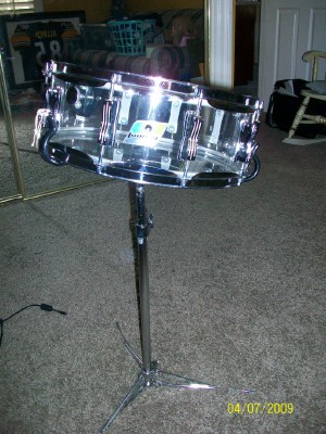 I have a 10 lug vistalite snare in great condition (you have to REALLY look close to see any MINOR surface scratches). It still has the original bottom head and wires. I am not sure about the sound...doesn't have the same pop as an Acrolite, but has a nice rocker sound. You can loosen it it and it has a nice soft jazz sound.