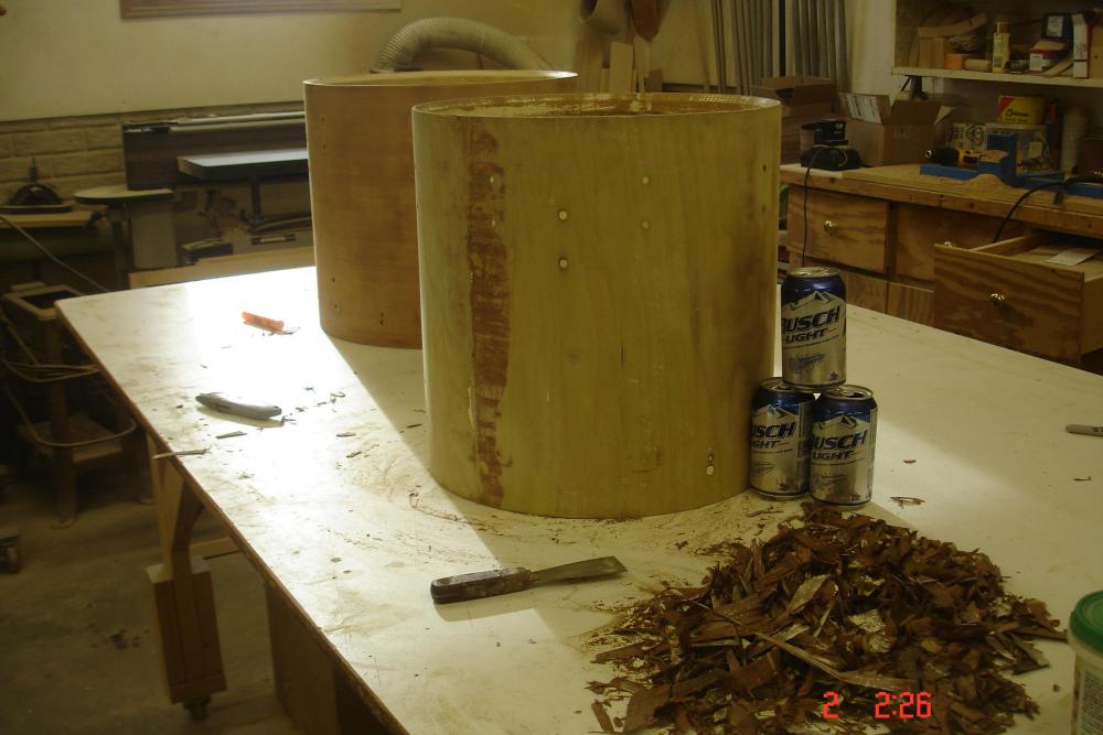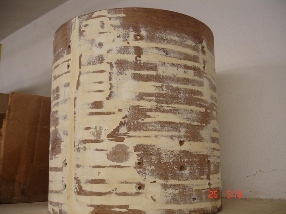 The previous owner peeled the original wrap along with most of the mahogany outer ply. In one place it looks like he actually sanded some of the bdp wrap off, as there was still some melted to the outer ply.