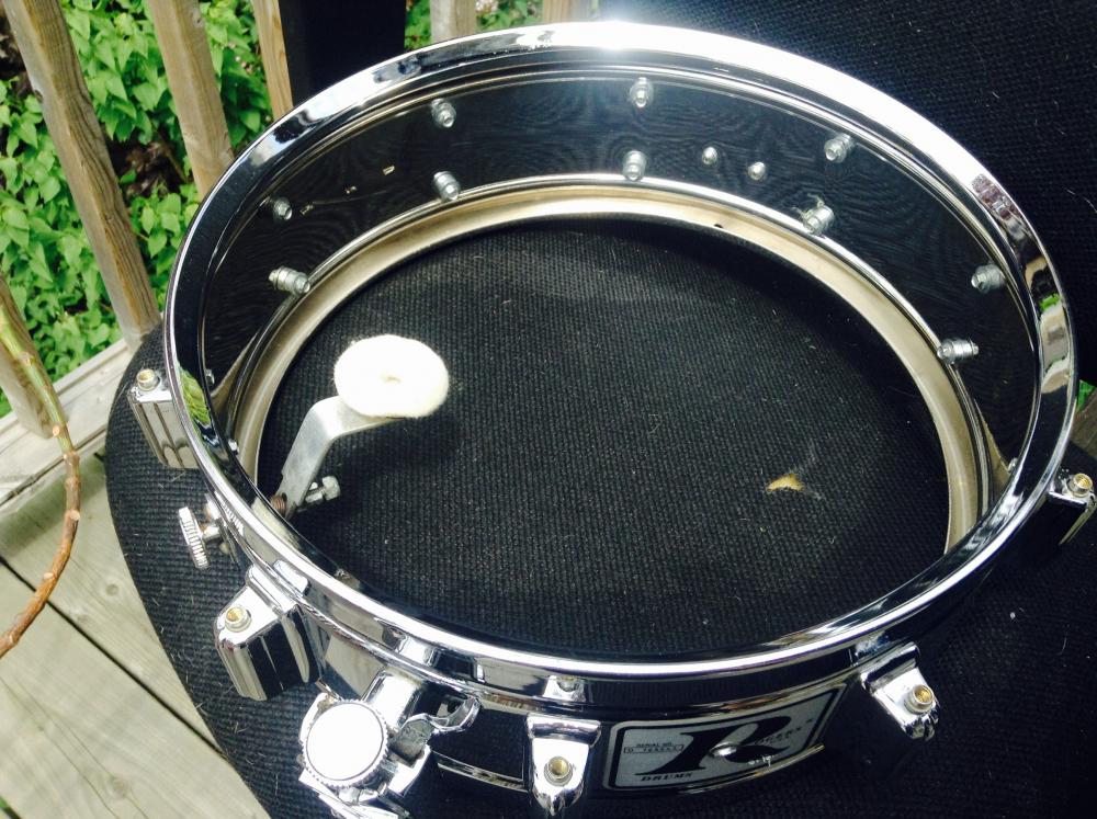 Much thanks once again Mr McFeeters! I'm loving the Super Ten. I'd never played one before. Once I got heads and snares back on it was easy to tune very pleasant to my ears. Very different from my Dyna, but not a lesser snare, just wilder and more "open". Unfortunately I have to give it back to my friend once I finish his champagne sparkle Dayton kit. Some idiot sprayed the floor tom black and it took me weeks to clean that (thou shall not kill...). I'm preparing the rest of the kit for a Novus job, a little hoop painting and my friend will have his kit back looking as fantastic as they already sound.