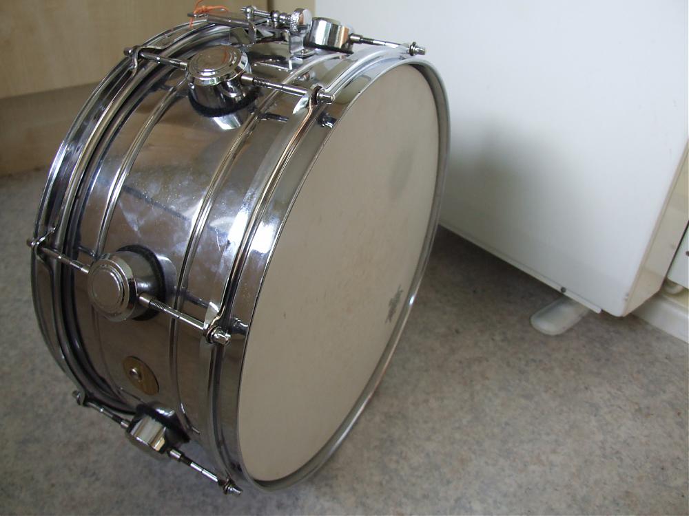 The original hayman metasonic snare drum was 14x5. It had 10 lugs was chrome over aluminium. Slotted tension rods. Baseball bat damper. This was the only configuration they made on this snare drum. Produced 1972 and had a silver hayman badge. The centre bead was a flat type. Not many around nor were there many produced and highly collectable. The snare on this thread is some type of re production of poor quality. Hayman never produced any type of steel shell. I will post pics of mine which im lucky to own. Maybe we can see other owners pics of the rare hayman metasonic snare drum. The wooden shell was mass produced from start to finish of hayman 68-75. The metasonic was a limited issue.