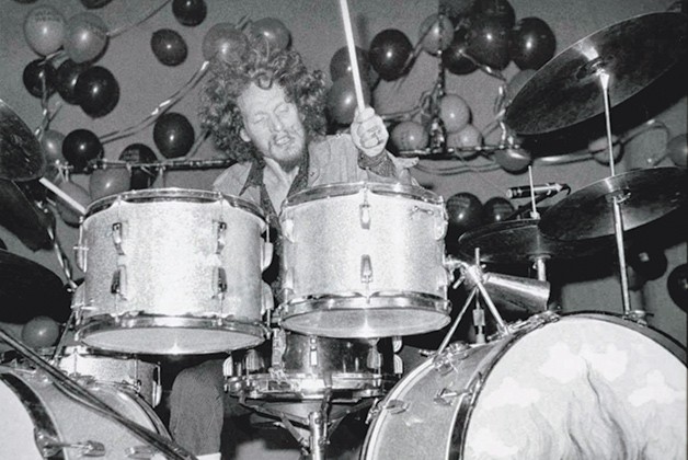 He put his ride and crash above each other on the same cymbal stand.