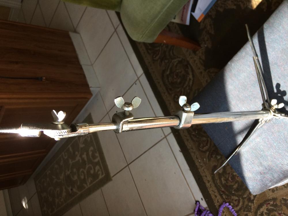 Same for the picture of the stand. Flat based stand, with wing bolts that match the Ludwigs. But the fastener for the top tier is a different style. It's not drilled through the tube; a pretty good idea, really, cuz one less threaded hole to strip.