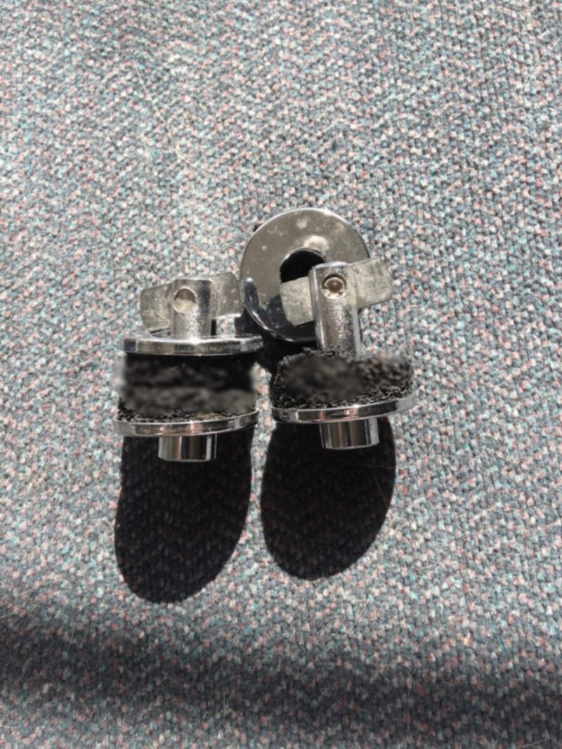 Two pics attached. One is of a cymbal stand topper nut with a rotating 'clip', to eliminate the wing nut on the top of the stand. I believe Zildjian marketed these -- these are for 6 mm thread. Anyone know a who what when where?