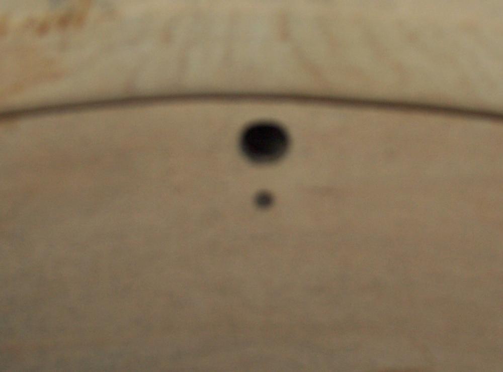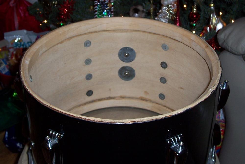 Thanks for your input! Yes, that is a wrap seam near the top of the bass drum. Very strange place to have one. Attached is a pic of the holes for the muffler on one of the rack toms. I apologize that's it's so blurry.