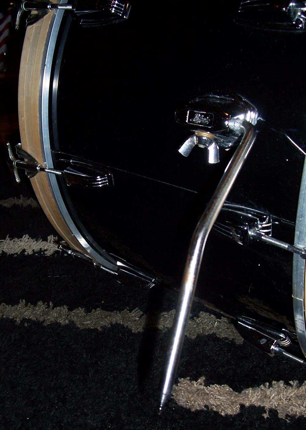 Thanks for your input. In regard to "extra holes in the bass drum", I plan on popping a head on that one today to see what's inside. In regard to a rail mount, since the kit came with two rack toms, a tom post was quite common and can be seen on Ludwig's Hollywood kits from that time period with the gull wing spurs on the bass drums. I'll be checking to see if there are any holes in the shell for a cymbal bracket. I totally agree with you concerning re-wrapping in gloss black. Then again, everyone has his or her "favorites".