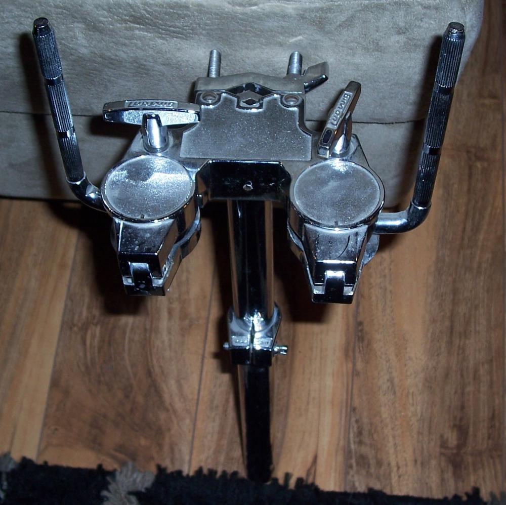 So, I picked up a Ludwig kit (22/12/13/16) over the week-end for next to nothing that a prior owner had re-wrapped in a Gloss Piano Black. He apparently didn't see the need to to re-install the original badges or tone controls. I'm trying to date this one, devoid of the badges. I also couldn't find any date stamps in any of the shells. Based on the hardware and shell composition, my original assumption was that it was probably from the '60s or '70s. However, I'm baffled by the double tom post that came with the kit. I've never seen one like it. I'm thinking that it was probably an "add-on". The label on it reads: "MADE IN TAIWAN EXCLUSIVELY FOR LUDWIG. LUDWIG IND. MONROE, N.C." It doesn't seem to fit the rest of the kit components or hardware. Any "words of wisdom" regarding the possible age of this kit and/or tom post would be greatly appreciated. Thanks in advance for your time and your help.