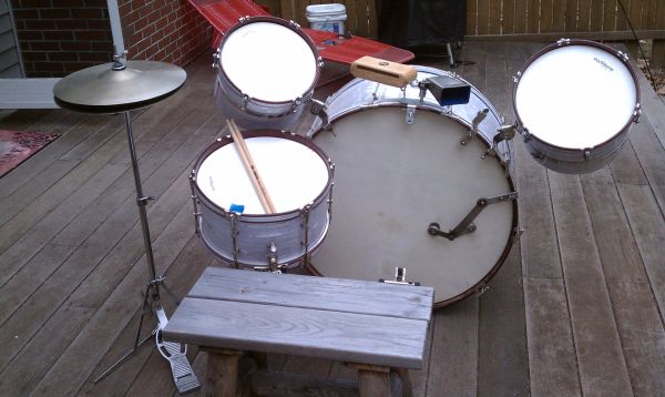 It does seem to be in good condition. However, it looks like a rewarp as the 2 toms are concert type and from what I've seen from other drums in this era they would have likely had tacked heads and I can't see any holes in the wrap from removed tacks. I know little about these other than they were American made in St. Louis and the snares seem to actually sell on ebay for 100-150 range.
