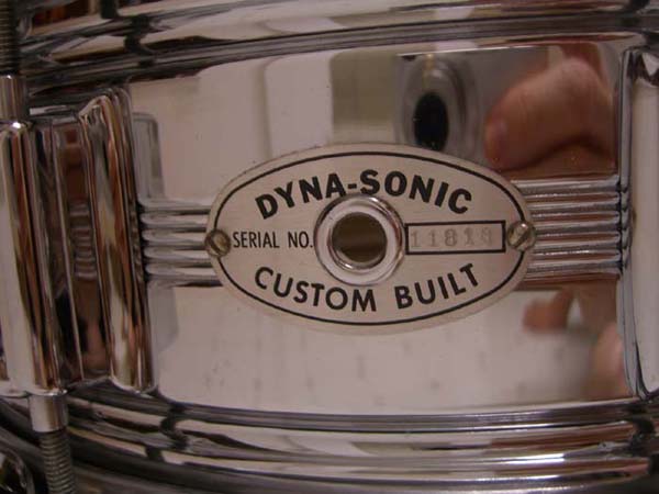 The drum dates to approx. 1965... it should have 7 lines running around the outside of the shell, and it should have the "new" Swivo-Matic throw, not the Clockface. I have a MINT 1965 COB Dynasonic and it is serial number #7694. Yours, at serial #11818, falls in the same year, approx.