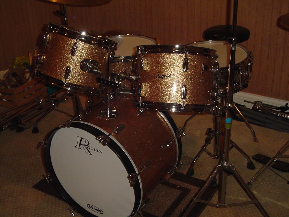 I just finisher a rebuild on this Rogers kit. It's a bit of an enigma. Two 13" toms, one with the script logo facing the player, B&B lugs on the toms, Beaver tails on the bass. This was the way the kit was bought used in 1964. I got it from the second owner. I think it was actually shipped from the factory this way??
