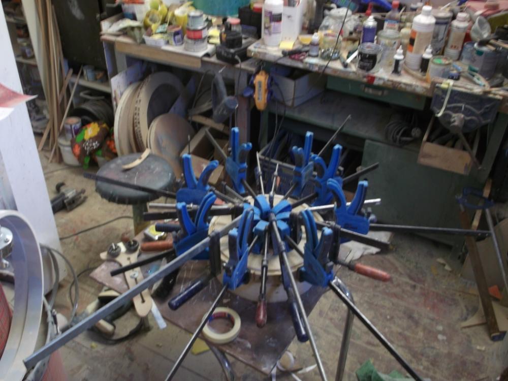 Suppose you want a red sparkle. Strip the shell, remove glue etc. Sand. Apply a thin layer of primer (terpentine based, I'll explain why later). Apply a thin layer of red laquer. All of this with a brush, no need for expensive spray paint. After drying, sand lightly. Then cover the shell in a reasonably thich layer of colourless laquer. Sprinkle red glitter flakes on the wet laquer. until completely covered. In fact you should overdo it a bit. the surplus of flakes will fall off and can be re-used. tap on it lightly with a clean hand (this way you push the flakes in the laquer). Allow to dry for a day. rub slighty with hand, to remove non-stuck particles. Apply a thick layer of colorless laquer. When this layer is dry but not yet hard: take a clean piece of baking-paper, put in onthe surface en rub strongly to smoothe the surface somewhat (baking paper won't stick). Allow to dry. DONT SAND!!! because you'll sand through the firts layer of laquer easily and you'll sand the red of some flakes, making them silver!!! you don't want that. Aplly a couple of layers, day after day, sand in between very lightly. After a couple of layers it all kind of smoothens out. The more layers the smoother, depending on tast. Use only high gloss paint. When it is mooth enough, sand strongly with 120, layter 180, 240. Then apply one last layer of spraypaint (on terpentine basis, not thinner basis like car paint, it will ruin everything!!!!).