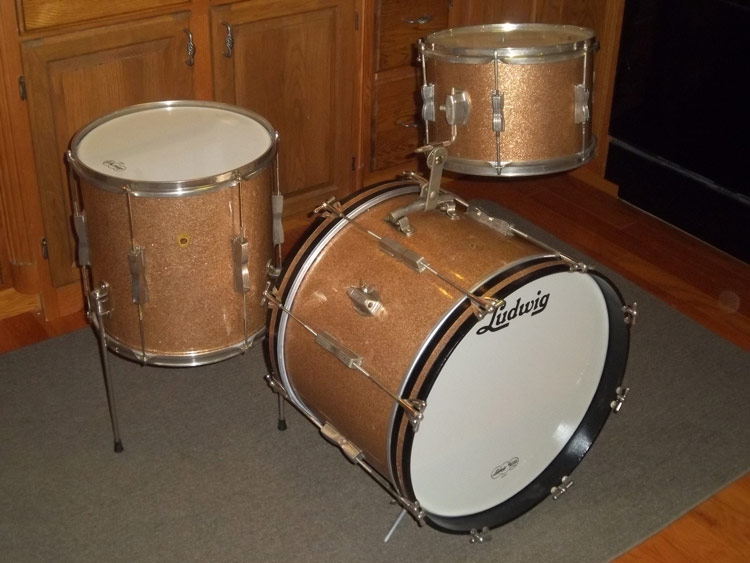 Includes 60s Ludwig champagne sparkle Club Date set. See listing for full description.