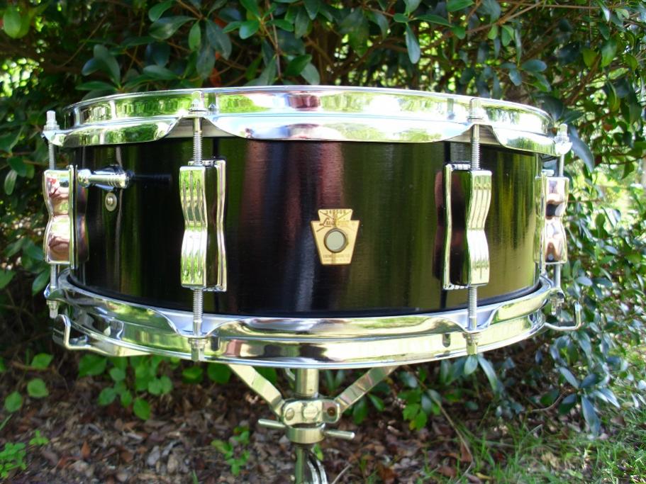 This is a beautiful Ludwig June 17 1966 Jazz Festival snare in original Black Lacquer Duco. This 3 ply 8 lug drum is in fantastic shape. It is completely original with the exception of heads. The finish is not flaking or crazing and has a beautiful sheen to it. Chrome hardware is super nice. White resacote interior looks great. P83 strainer works smoothly and has original snare cords and 18 strand Ludwig chrome script logo wires. White felt baseball bat muffler is good and tight and has seen little use. Has a Evans genera dry head up top and and an older Remo Ambassador on the snare side. Drum sounds amazing. These were Ludwig's premier wood snares back in the day. Will be a nice one to add to your collection, play and enjoy. Drum is clean as a whistle and needs nothing. Please pm me here or email to [email]mikelayton@bellsouth.net[/email] if you have any questions. Thanks for checking it out.