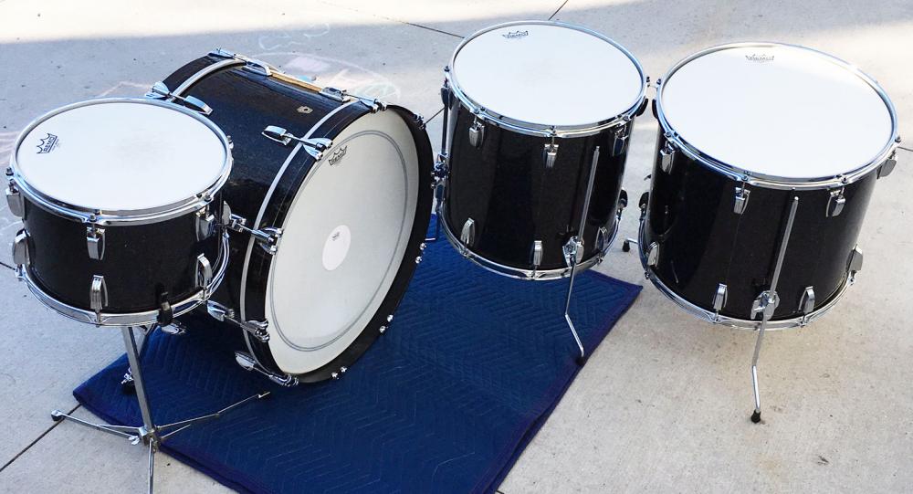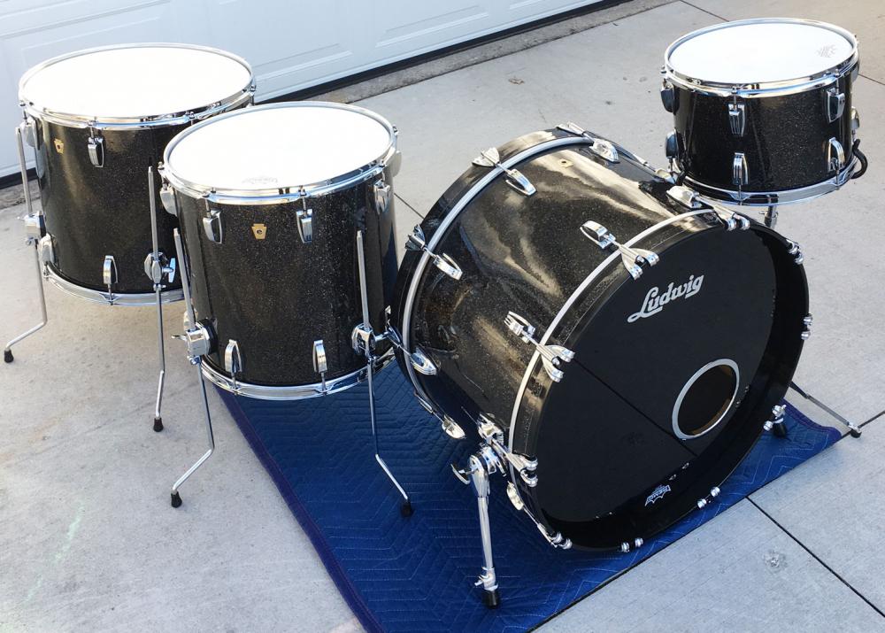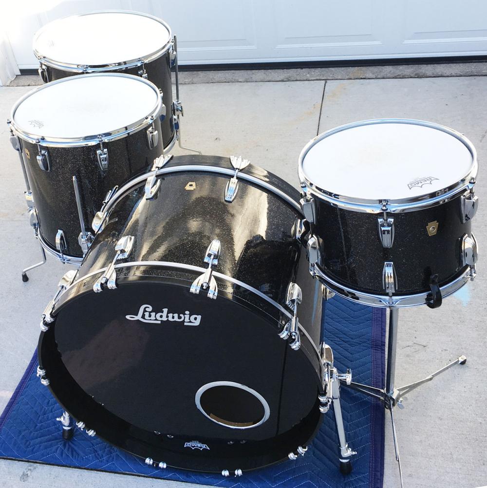 For sale is a set of just immaculate Custom Order 2015 Ludwig Legacy Maple Drums in Black Glass Glitter. Sizes are 13/16/18/24. Virgin 9x13 tom and 14x24 bass drum. They were only very lightly played and are in like-new condition. Not a scuff, scratch or any sort of condition issue present anywhere. Practically brand new! This configuration was custom ordered from Ludwig in early 2015. The black glass glitter wrap was special ordered from Precision Drum Co. and sent to the Ludwig factory where Ludwig did the actual wrapping in-house before completing the kit. This kit also comes with an included extra full sheet of matching wrap for future use on a snare or any other add-on drums! Now is your chance to get a like-new Ludwig Legacy maple kit in awesome sizes and wrap for a killer price! Snare stand shown not included.