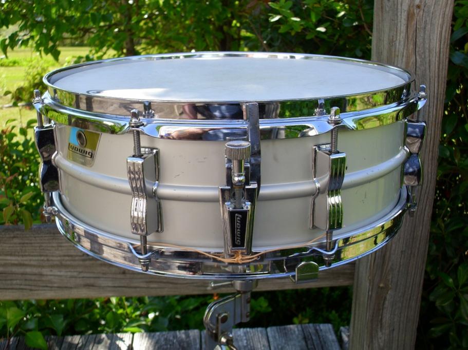 This a 70's Ludwig Blue Olive pointy badge 5x14 8 lug Acrolite. Serial number is 1783983. These have the light anodized finish and sound much like the earlier Keystone badge models. This is a good solid drum but has seen some playtime. The shell has no dents/ damage but does have some light scuffs and so forth. The blackface P85 strainer works perfectly. Has the block logo snare butt, 20 strand wires with new Ludwig cords. Has an Evans genera hd batter head and an Evans hazy 300 snare side head. The bottom hoop is a Ludwig replacement. Large round knob muffler works great. These are made from the same seamless shells as the Supraphonic and sound great. This one has been completely detailed, tuned and ready to put to use. Please feel free to pm me here or email to [email]mikelayton@bellsouth.net[/email] if you have any questions. Thanks for looking.