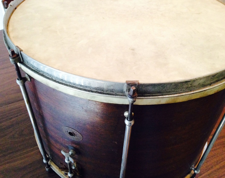Vintage 1920s Ludwig & Ludwig 17 inch diameter x 12 inch tall Military Model Separate Tension Street Marching Snare Drum. Everything appears to be original, and it includes a vintage hard case and vintage sticks. Sticks have "National 3A" debossed on them. Drum is in great shape for as old as it is.