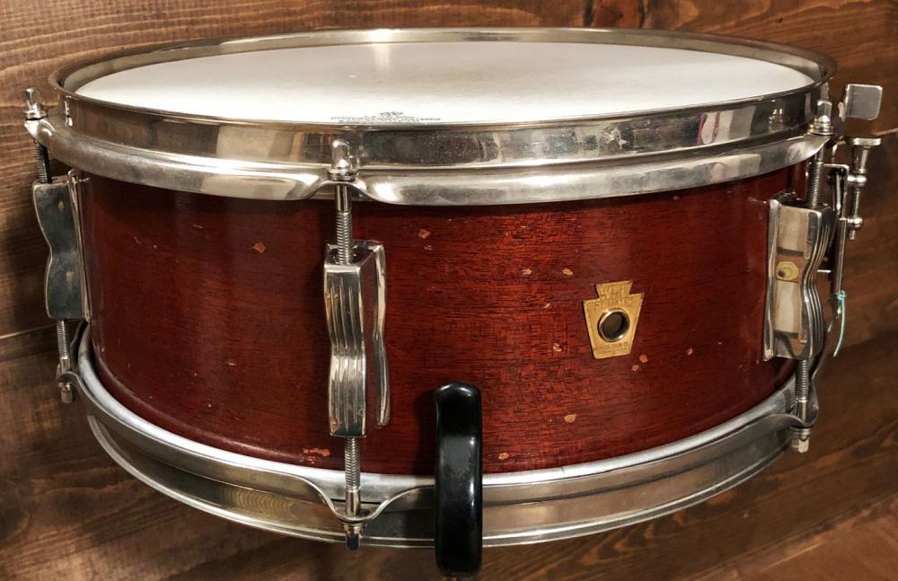 For sale is a nice Vintage 1957 WFL 5.5x14 Supreme Concert Snare Drum in Mahogany in great players shape. Three ply shell is in-round with original factory edges. No mods, issues or extra holes. Scuffs in the finish as shown. Nickel hardware is in good shape. Nickel over brass hoops. Red date stamp of SEP 21 1957 present. Overall a great looking and sounding snare!