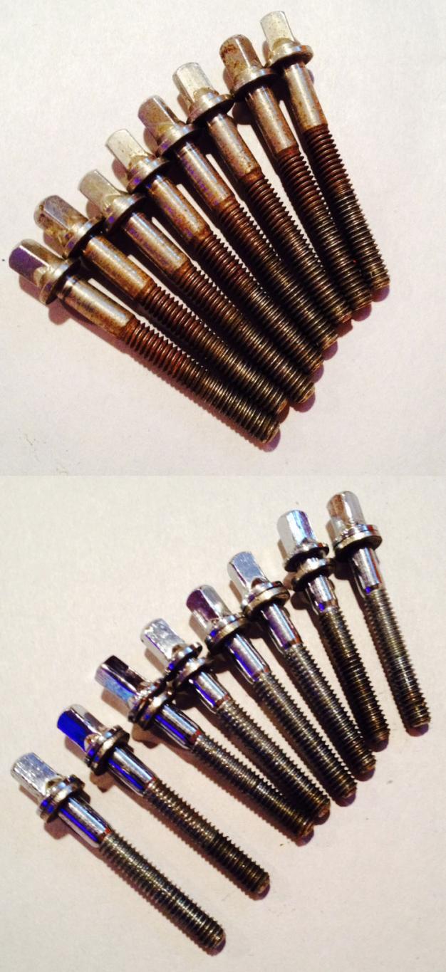 • Set of 8 Chome Tension Rods with Brass Washers, 1-5/8" length from collar with 1/2" threadless top shaft - $15.00