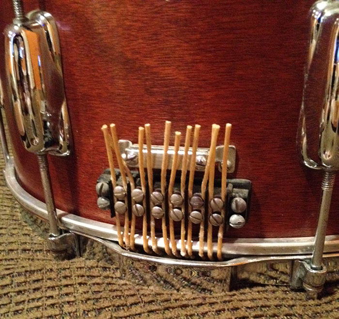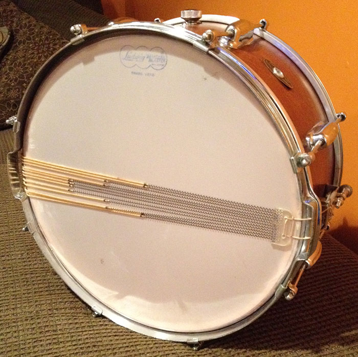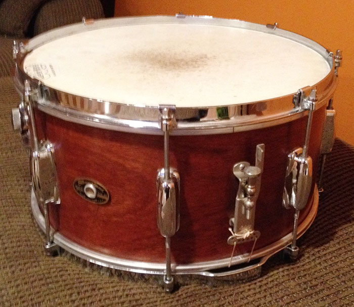 For sale is a Vintage 1960s Slingerland Radio King Student Model 7x14 Snare with chome over brass hoops. Original finish in great shape. Drum is in-round and tunes very well. Original bearing edges. Vintage Ludwig heads on top and bottom. Throw seems to have been upgraded to a Ludwig P-83 along with buttplate and snare wire modifications.