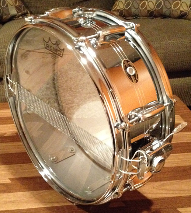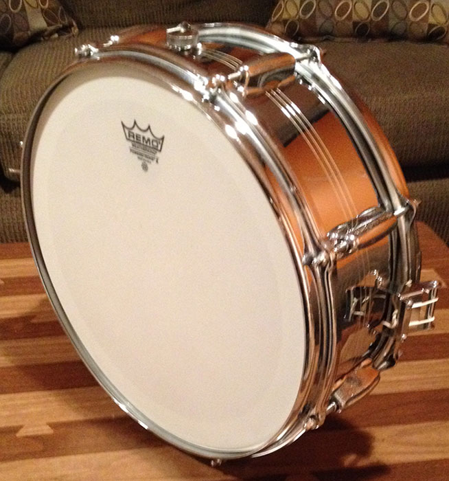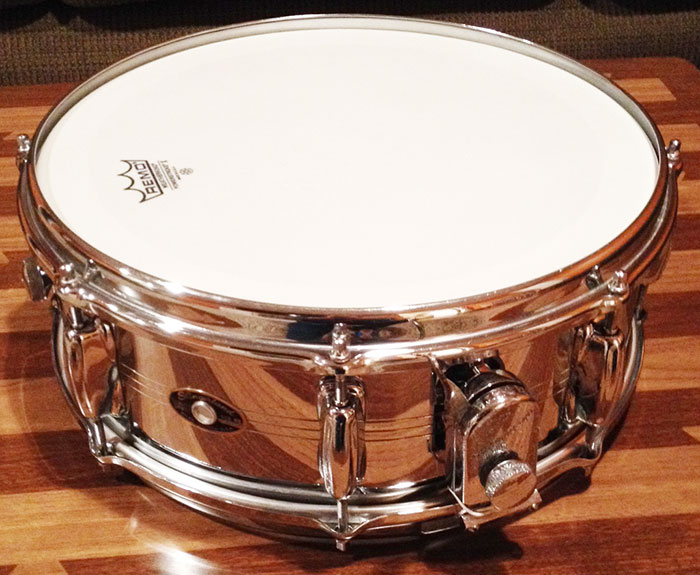 For sale is a chrome over brass Vintage 1960s Slingerland Sound King 5x14 Snare with 8 lugs and zoomatic throw (good amount of pitting on the throw), original snare wires and new heads. Serial is #231476.