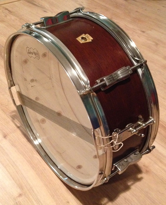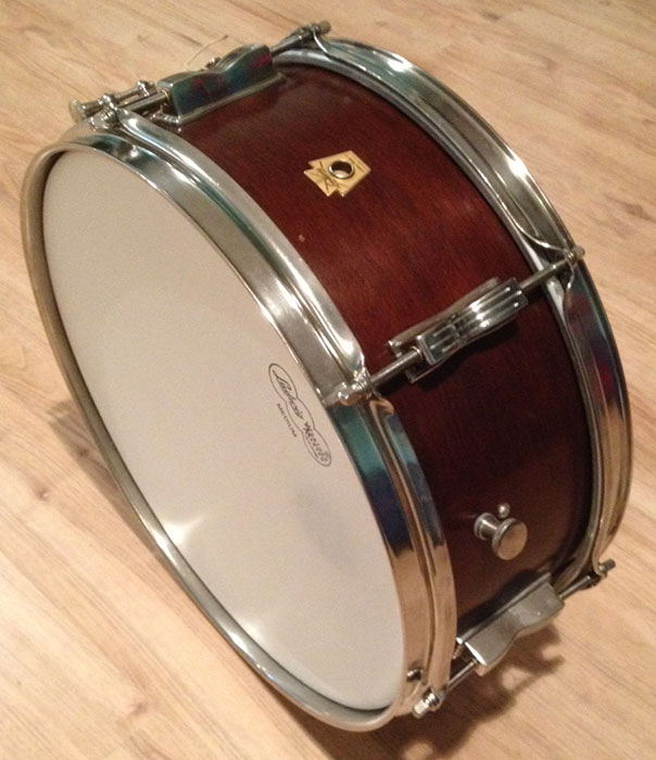For sale is a Vintage 1961 Ludwig 5x14 Pioneer Snare in Mahogany with nickel hardware and nickel over brass hoops. Shell is in-round with clean, original edges. Pre-serial keystone badge and black date stamp of DEC 28, 1961. New Ludwig heads. Some scuffs in finish. Lug mounting screws don't appear original. Overall, a nice snare!