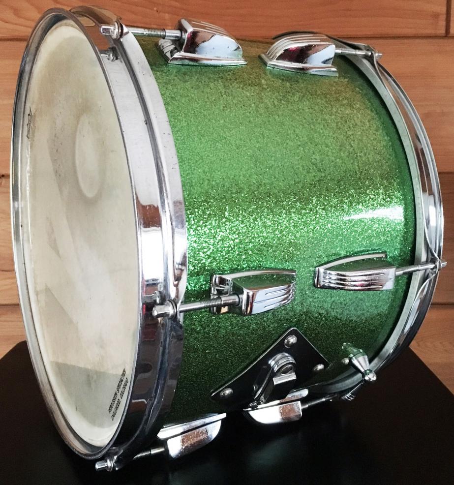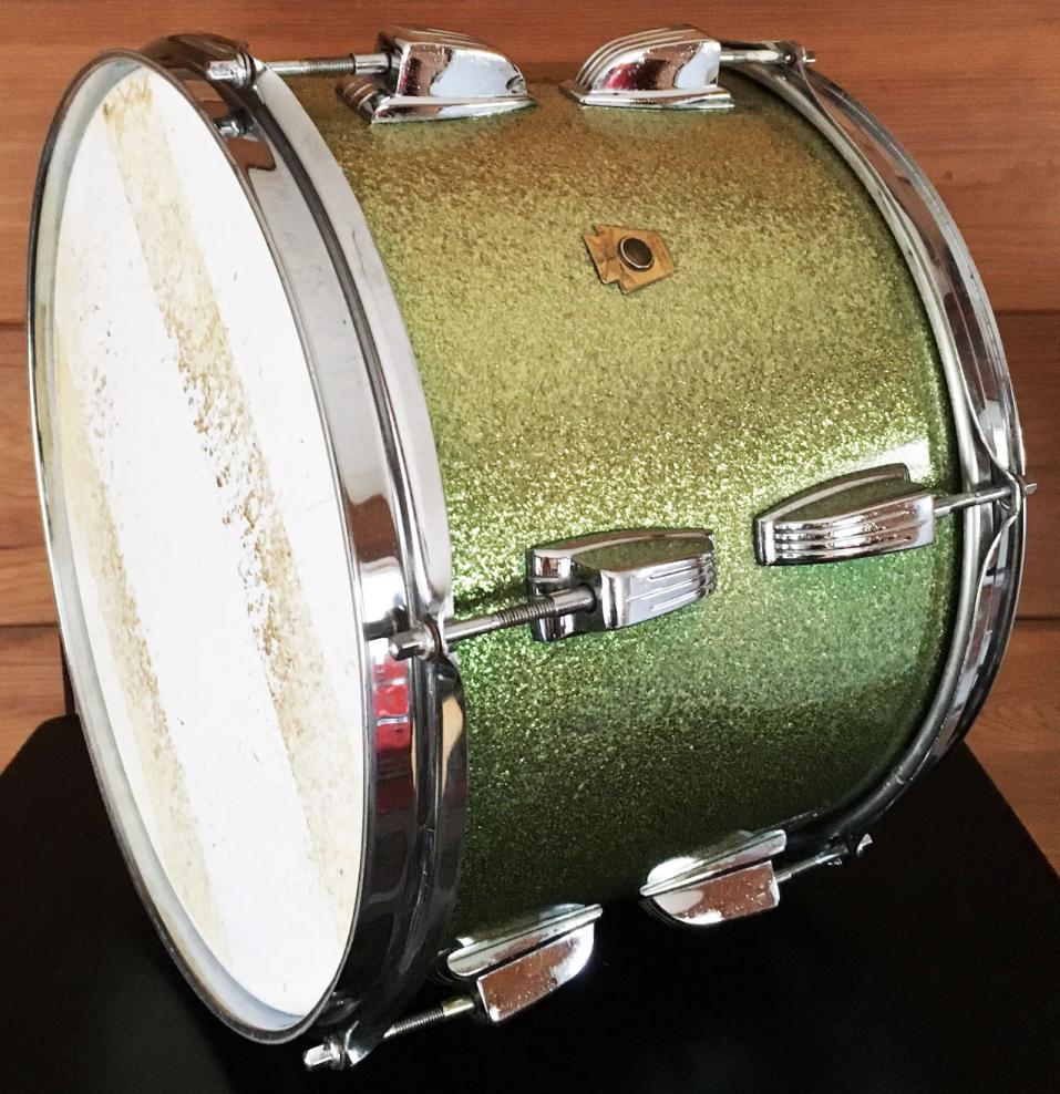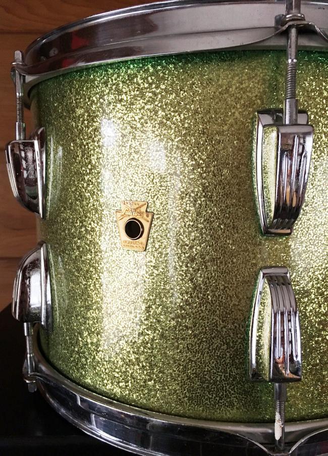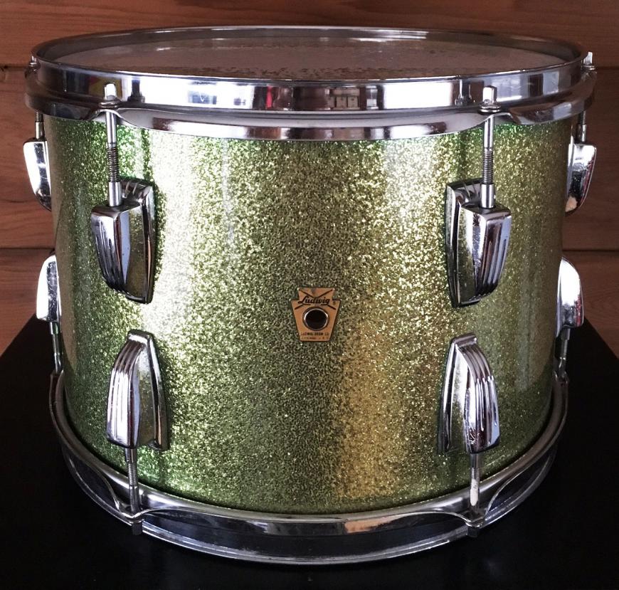 For sale is a nice Vintage 1964 Ludwig 13" Classic Tom in Faded Green Sparkle. Shell is in-round with nice original bearing edges and interior. Chrome hardware with chrome over steel hoops have minor oxidation and pitting. Green sparkle wrap is faded but is tight and glossy. Keystone badge with serial 145244. A nice tom in a great finish!