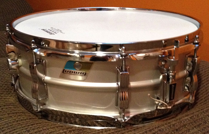 For sale is a Vintage 1978/1979 Ludwig 5x14 Acrolite Snare in superb condition. Everything appears to be original besides the bottom head. Shell is in round and features the standard 8 bowtie lugs. Chrome over steel hoops. I haven't seen one this clean in a while! All I can find are some very tiny scratches and oxidation on the hoops here and there, but that's about it. Snare wires look a little dirty as well. Overall, a very nice Acrolite. Serial is 1821109.