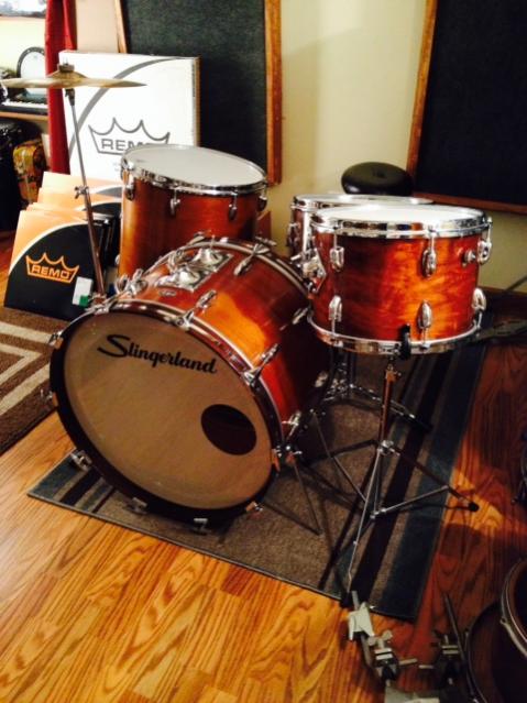 Normal wear, scuffs and dings on shells for a kit of this age. Some normal pitting and wear on chrome hardware. Not a showroom kit, but very clean, an awesome player and loud with great tone. I believe the shells are 3 ply with maple re-rings. The kick has 4 legs and two tom mounts as it is from an Avante model set: http://vintagedrumguide.com/images/slingerland_drum_sets/1973-slingerland-drumsets3.jpg No stands, other hardware, etc. included - drums only.