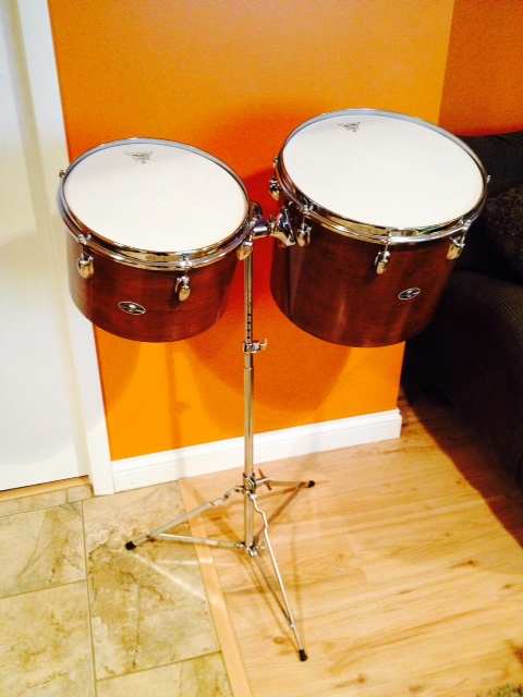 12/15 sizes. They don't match the above shell pack finish exactly (they are very close if you wanted to combine them), but were leftovers from a different kit I restored, so they are like new. Incudes stand.
