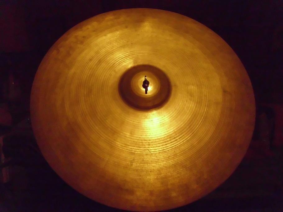 This is a mid 50's Avedis Zildjian 24" Block Stamp ride cymbal (one of the Large Stamps). Weighs a nice medium 3512 grams. This weight makes it very versatile for many styles of music. Was owned by an older retired Jazz Drummer. This cymbal sounds great and has seen plenty of play time for sure. Block stamp models are known for their wonderful sounding bells and this one is no exception. Cosmetically, it's what you'd expect to find on a 60+ year old cymbal of this dimension. It has stick marks, some edge nicks, and a ding on the top side about an inch in from the edge. One area to the left of the stamp seems to be just a bit out of round. Has no cracks and just a hint of a keyhole. These 24's are big beautiful beasts and will do a lot for you. On the stamp image, you can see a small engraving that appears to be an E possibly? I'm no good at sound files but have included one just the same. Please feel free to pm me here or email to [email]mikelayton@bellsouth.net[/email] if you have any questions. Thanks as always!