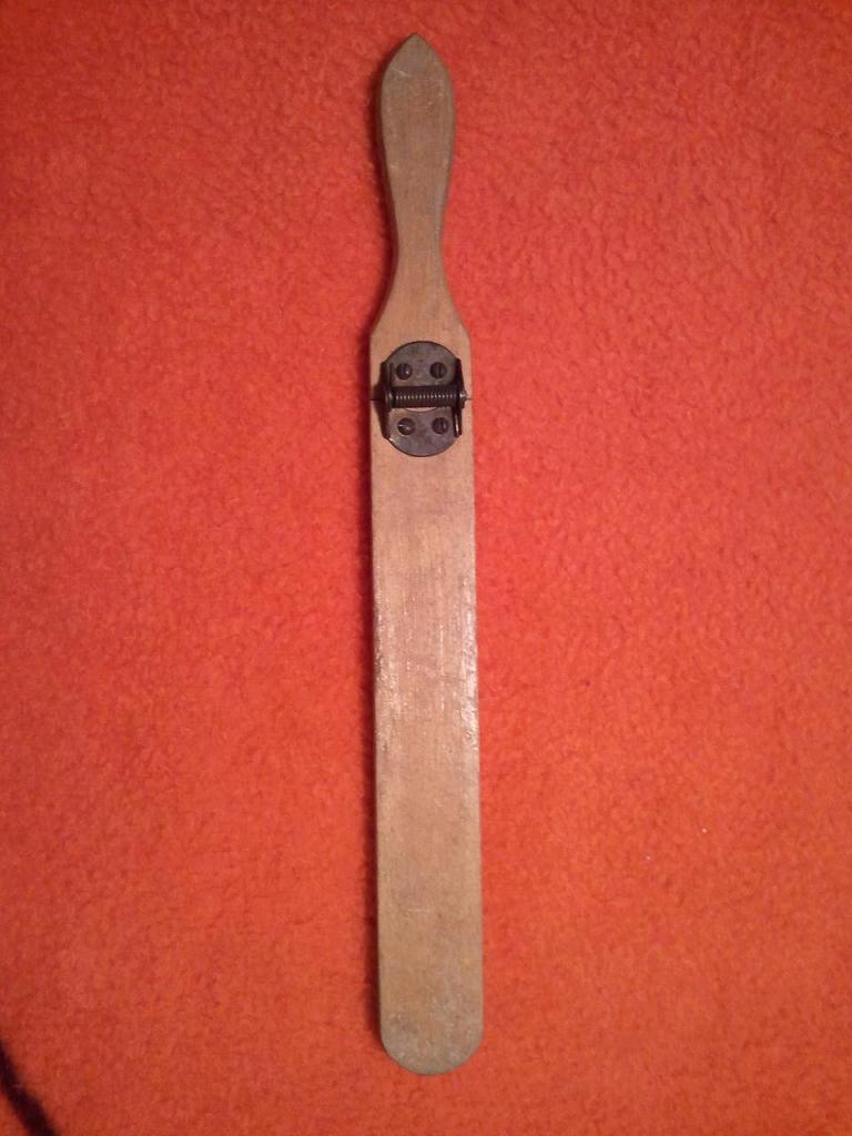 OldSchool - Thank you for digging this up! Great find! It is similar.Mine has an overall length of 19 3/8” to the handle tip, it is 2” wide, the slapper blade is exactly 14”, and the thickness of the wood pieces is 5/16”. The simple hinge appears to be original and doesn’t have a spring mechanism. It does sound very much like a whip, and I think that that is a good description to use for the sound of mine!:)