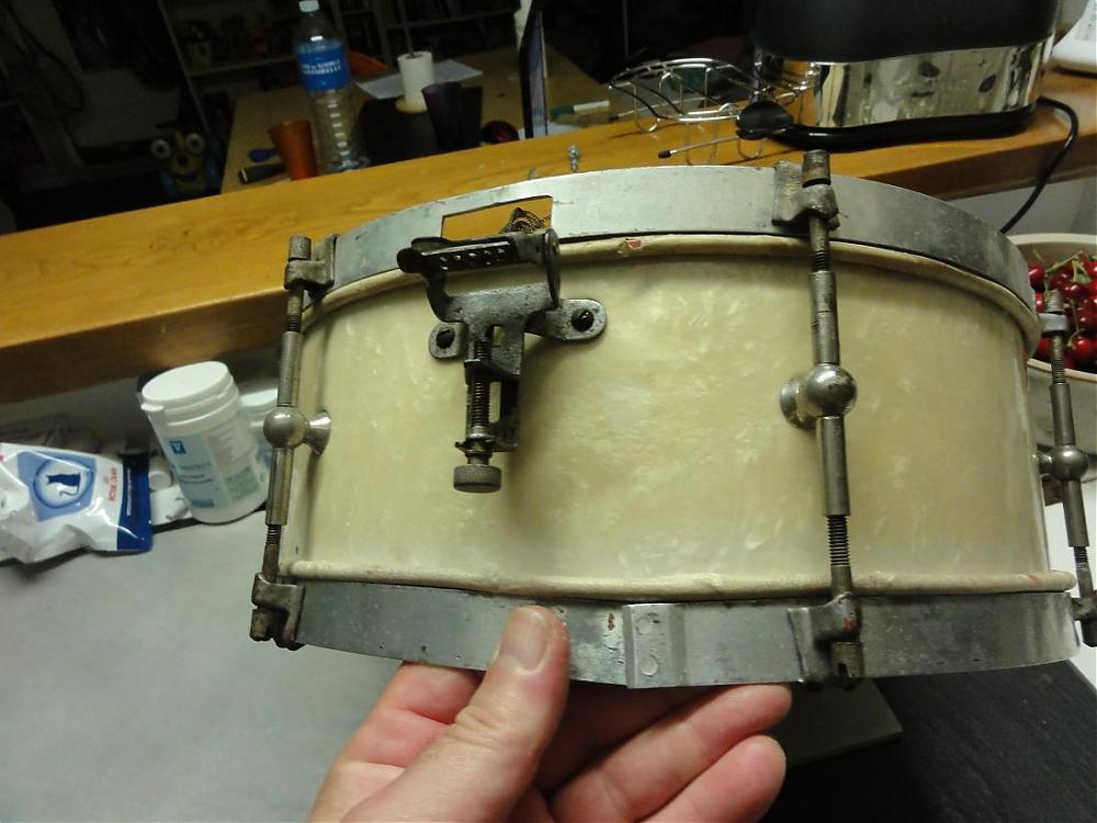 Complete with goat head drums in perfect state, this snare makes a 90 years journey in incredible condition. WPM.