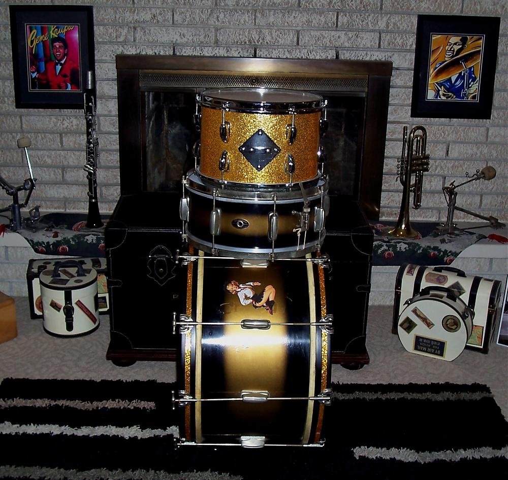 I've been putting a little "rockabilly" type kit together (see pic) and was thinking of adding a gold sparkle floor tom. If anybody knows where I might be able to find one for cheap, please drop me a line. THANKS!