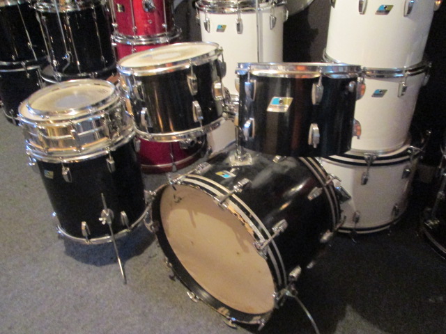 I just picked up this 70's 3 ply ludwig kit with re-rings in black cortex with the granitone sprayed interior shells, i'm thinking it's a 1975 hollywood 12" 13" 16" 22" with 14" supraphonic, the 12" tom has the the classic mini lugs.