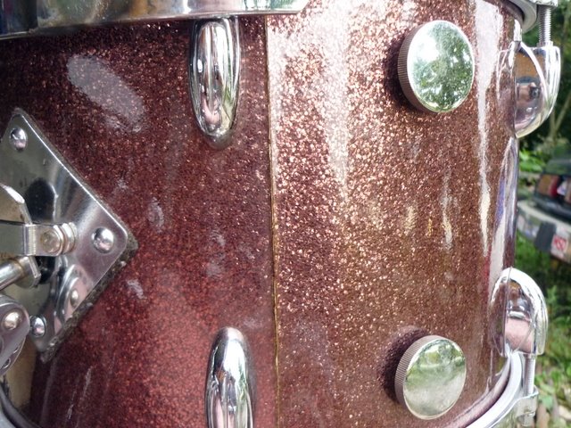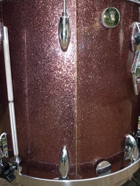 1) What's a good price for the drums inc snare? While the wrap is still pretty nice with only some (apparant) fading to cinammon brown, note the deterioration of the wrap on the bass drum hoops.
